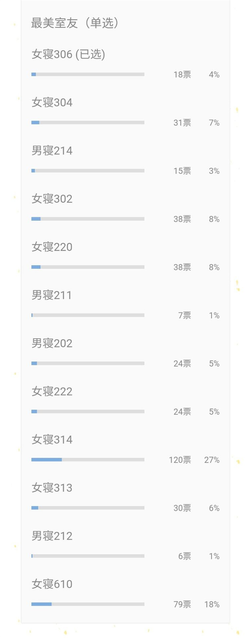 活动前期,生活部成员编辑并通知收集各参选宿舍的相关信息;宣传部制作相关展板,并放于红色花蕊处进行活动宣传;新闻部通过社交平台QQ来对本次活动进行宣传。活动期间,各参赛宿舍认真准备参选作品,由生活部成员收齐作品并对其进行初选,初选后所得作品由新闻部制作投票系统,让同学们参与投票。经过层层筛选,最终有六个优秀作品脱颖而出,分别是:5#314、4#610、5#302、5#220、5#304、5#313。